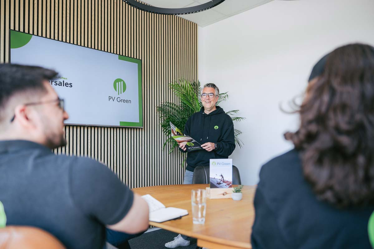 Unser Inhouse-Team passt diese Inhalte auf Wunsch individuell an deinen Standort an. Schnell, unkompliziert und immer auf den Punkt. Zusätzlich begleiten wir dich bei Aktionen vor Ort und geben dir erprobte Konzepte an die Hand, mit denen du regelmäßig neue Leads gewinnst. Du musst das Marketing nicht erfinden – du nutzt, was funktioniert. Mit PV Green hebst du dich ab. Nicht durch Lautstärke, sondern durch Qualität, Strategie und Wiedererkennung.